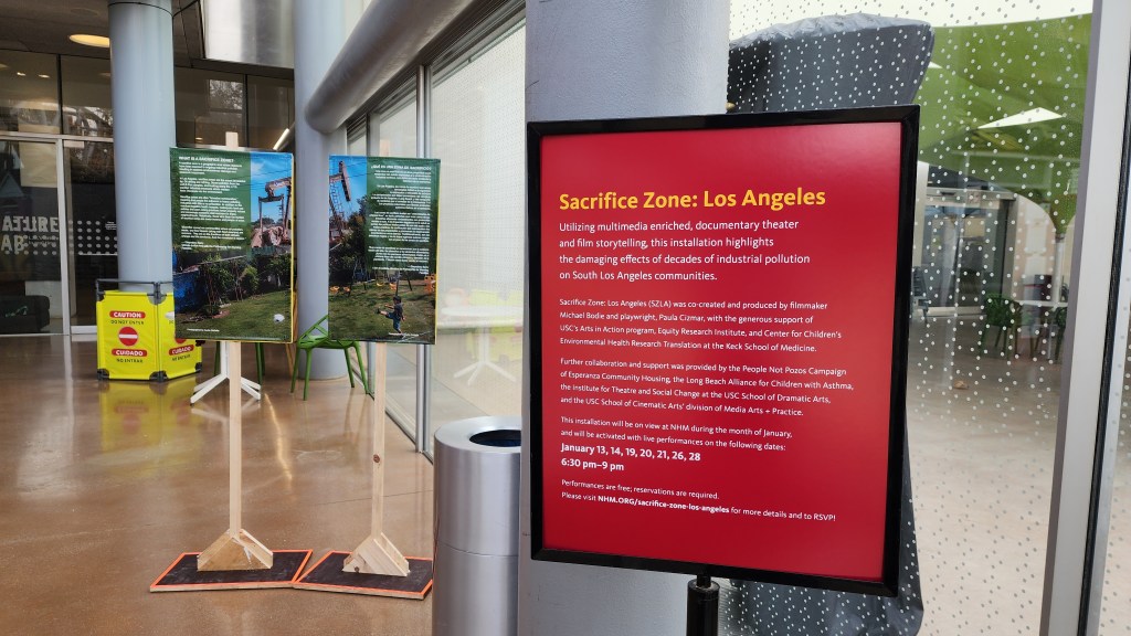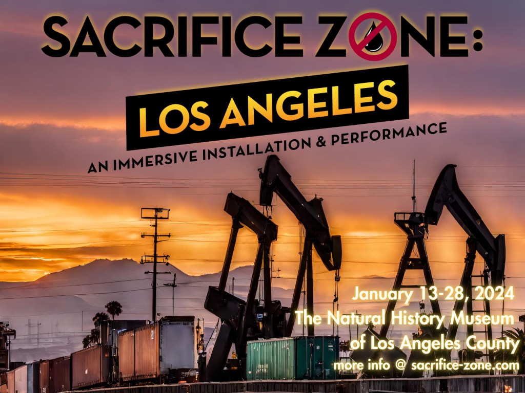 “Sacrifice Zone: Los Angeles (SZLA) is an immersive and interactive environmental justice experience that merges exhibition with live performance. Utilizing multimedia-enriched, documentary theatre and film storytelling, SZLA highlights the damaging effects of decades of industrial pollution on South Los Angeles communities.”
