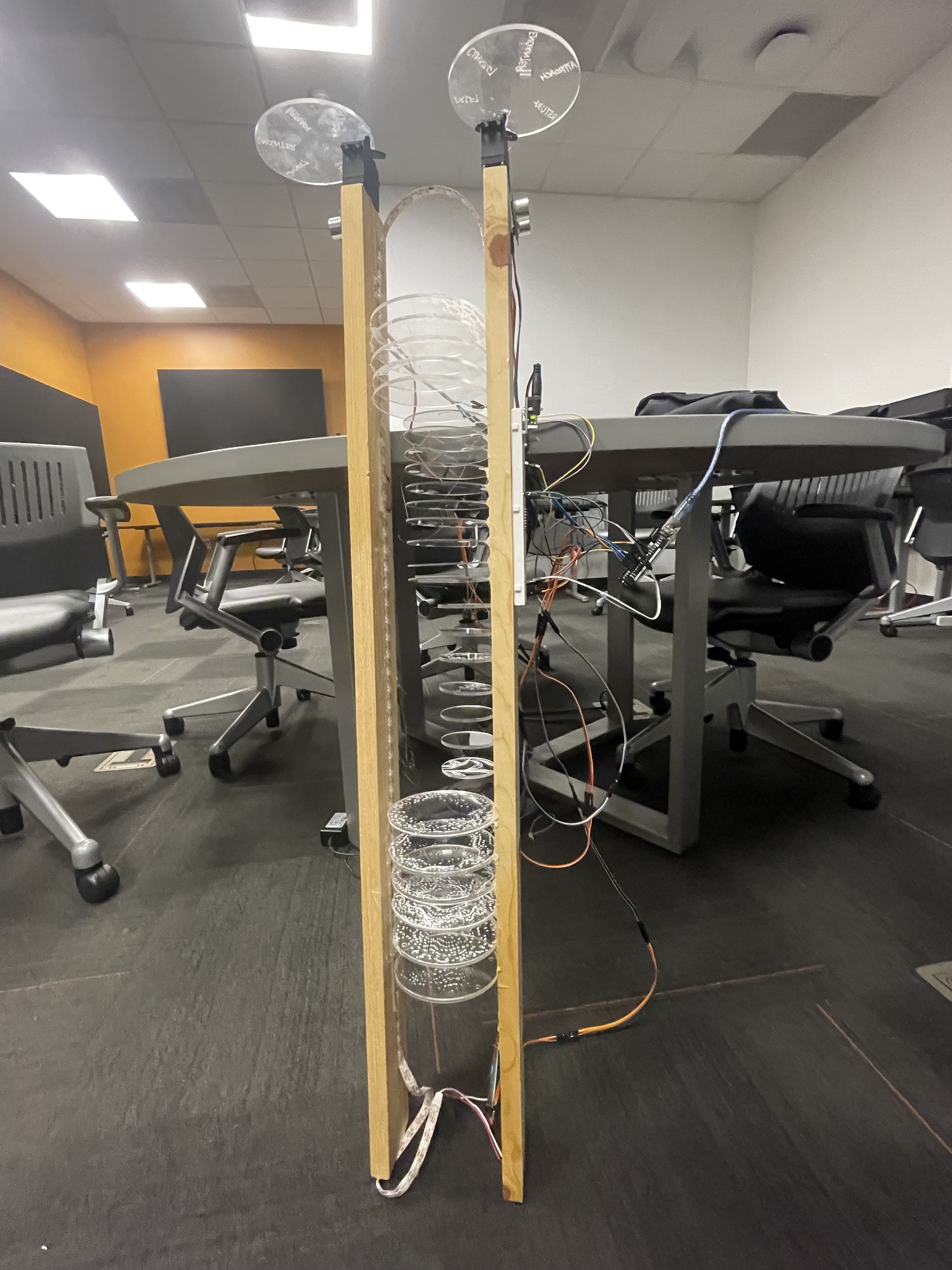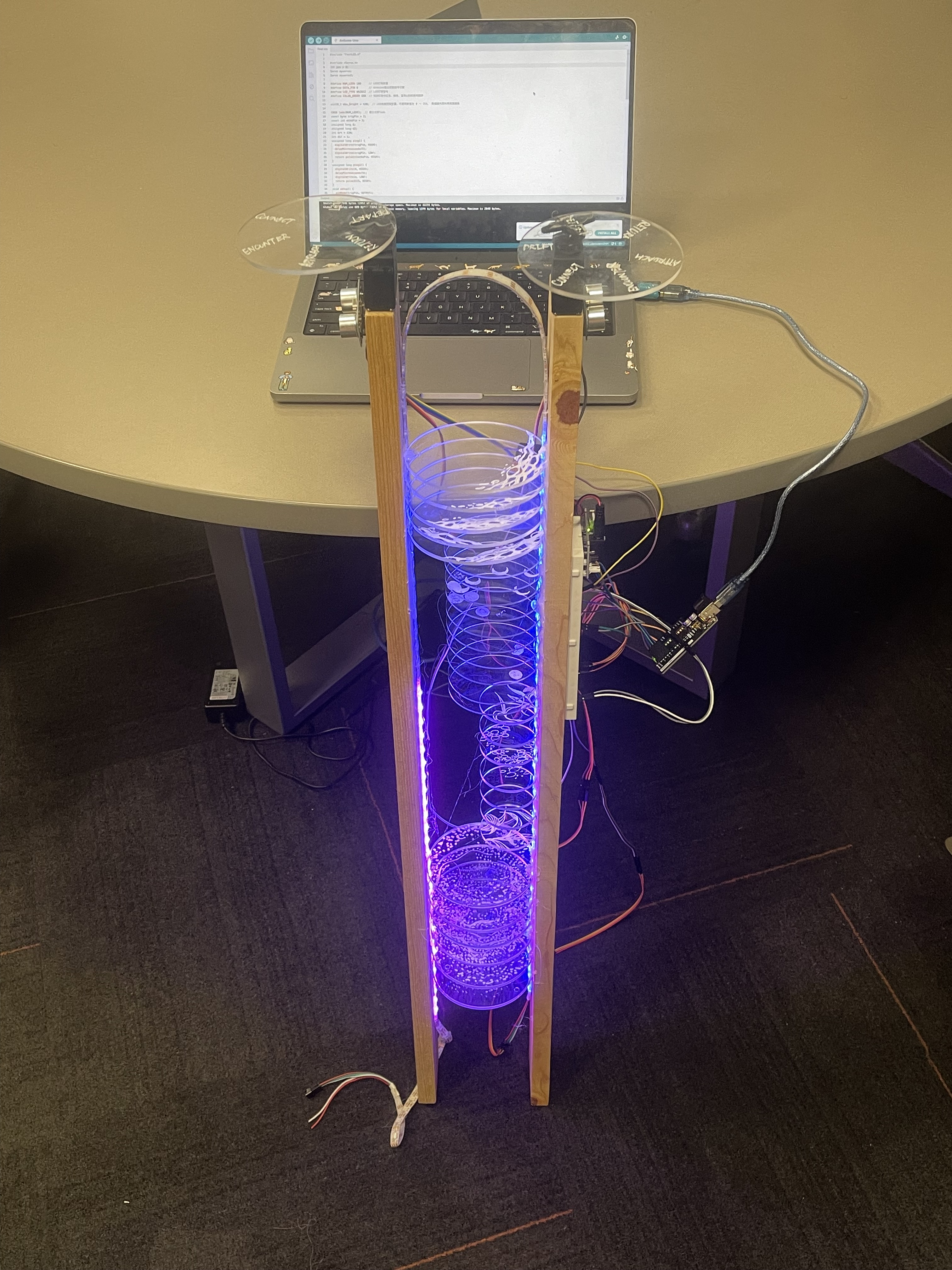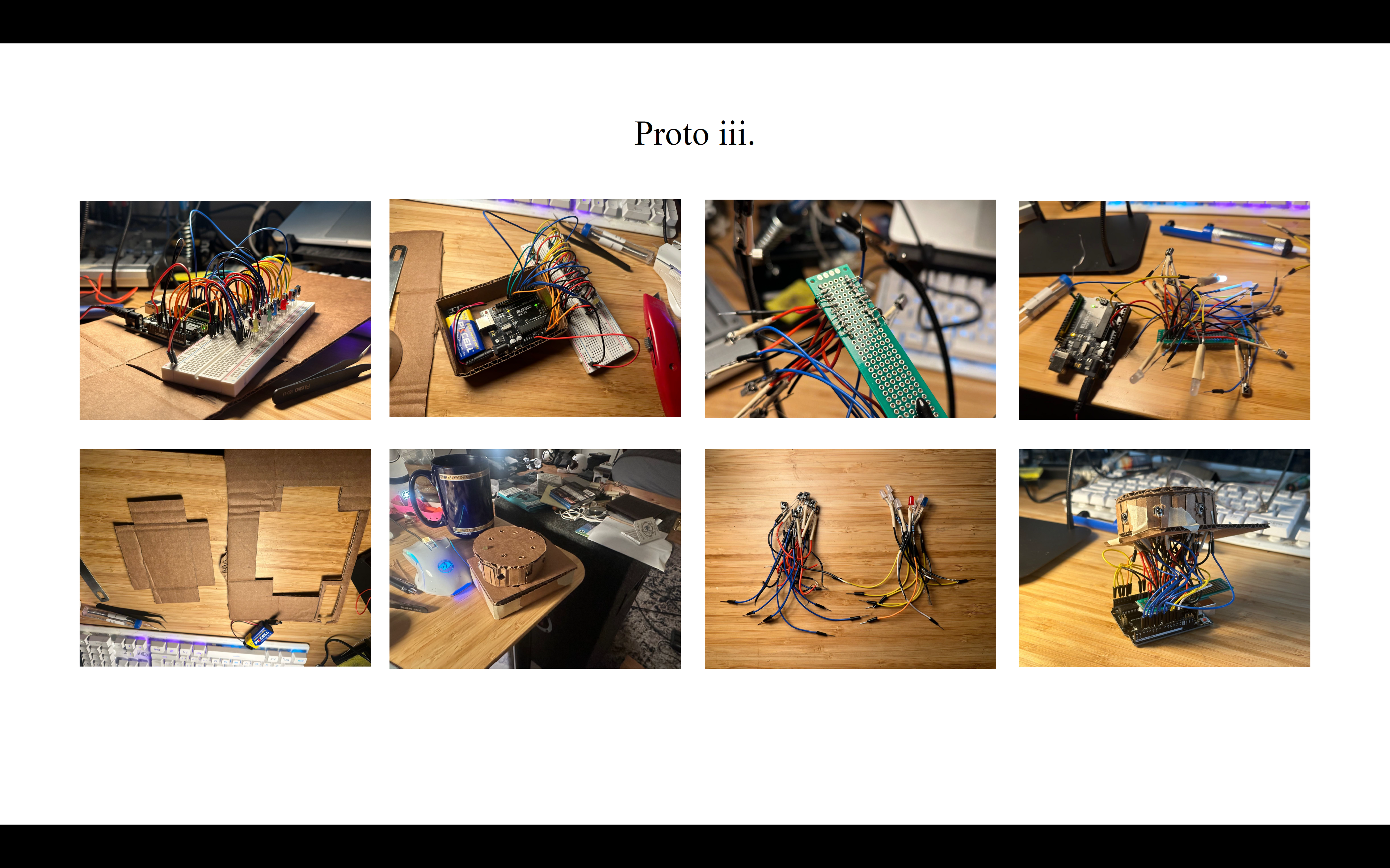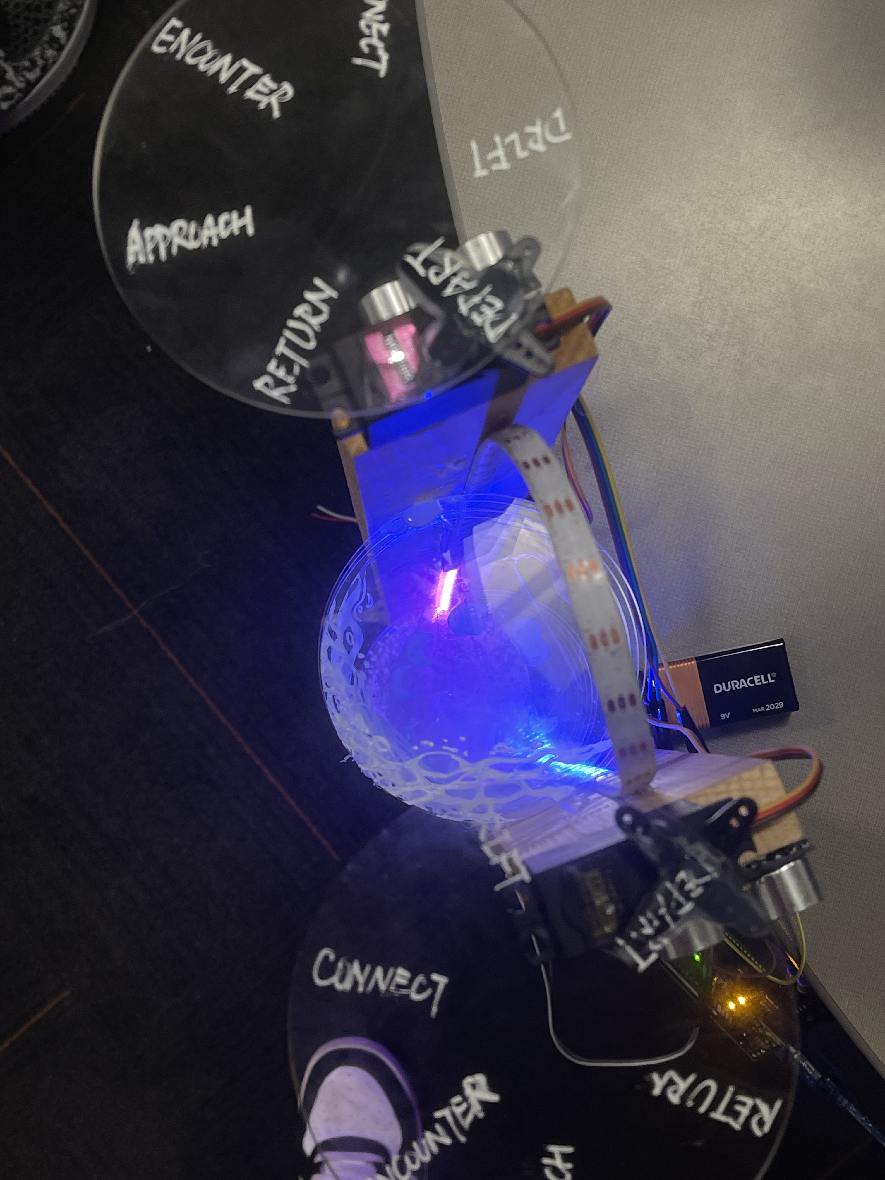 In Spring 2025, John B. Carpenter and I co-taught IML 404: Tangible & Spatial Computing at USC’s Division of Media Arts + Practice. John led the first five weeks of instruction (focusing on Processing + p5.js), and I taught the ten subsequent weeks. During my portion of the semester, we explored microcontrollers, kinematics, audio visualization, gesture control, projection mapping, DMX lighting, and more.