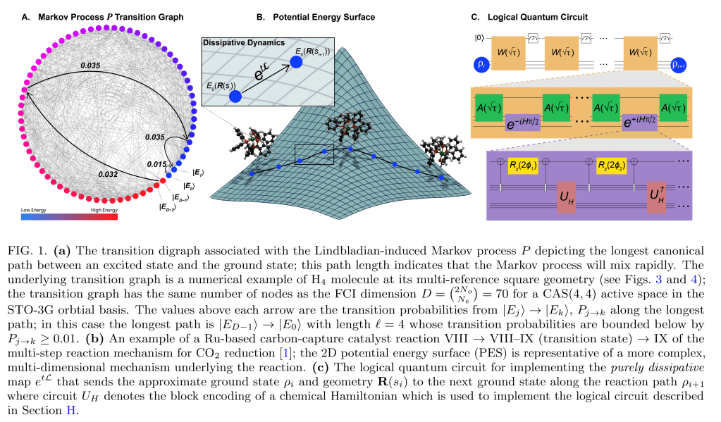 “Simulating chemical reactions is a central challenge in computational chemistry, characterized by an uneven difficulty profile: while equilibrium reactant and product geometries are often classically tractable, intermediate transition states frequently exhibit strong correlation that defies standard approximations. We present a protocol for dissipative ground state preparation that exploits this structure by treating the reaction path itself as a computational primitive…”